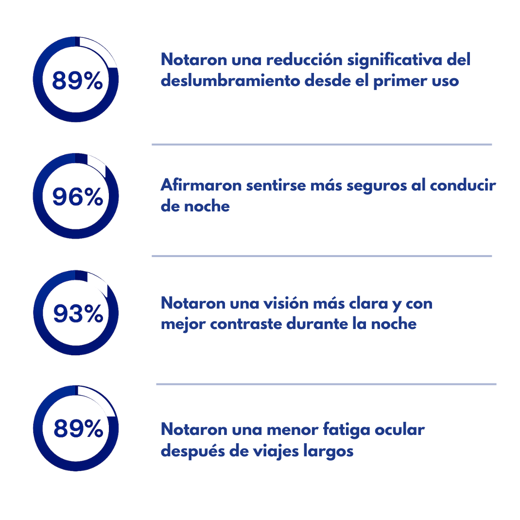 Las pruebas han demostrado una reducción del deslumbramiento y una mejora notable de la visión nocturna desde los primeros usos.
